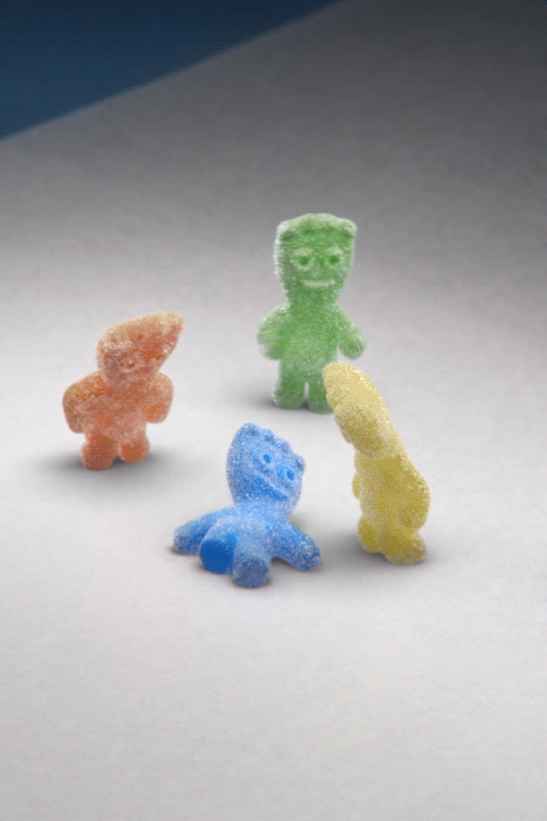 Sour Patch Kids was launching a new line of candy, switching from chewy gummies to chewing gum. Much like the gum itself, we wanted to show the transition from aggressively sour to sickly sweet.